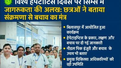 बिलासपुर। “विश्व हेपेटाइटिस दिवस” के अवसर पर सिम्स (छत्तीसगढ़ आयुर्विज्ञान संस्थान) बिलासपुर में हेपेटाइटिस जैसे घातक वायरल संक्रमण के प्रति…
