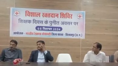 बिलासपुर। 05 सितंबर शिक्षक दिवस के अवसर पर रेड क्रॉस सोसायटी द्वारा विशाल रक्तदान शिविर का आयोजन किया गया, जिसमें शिक्षकों…