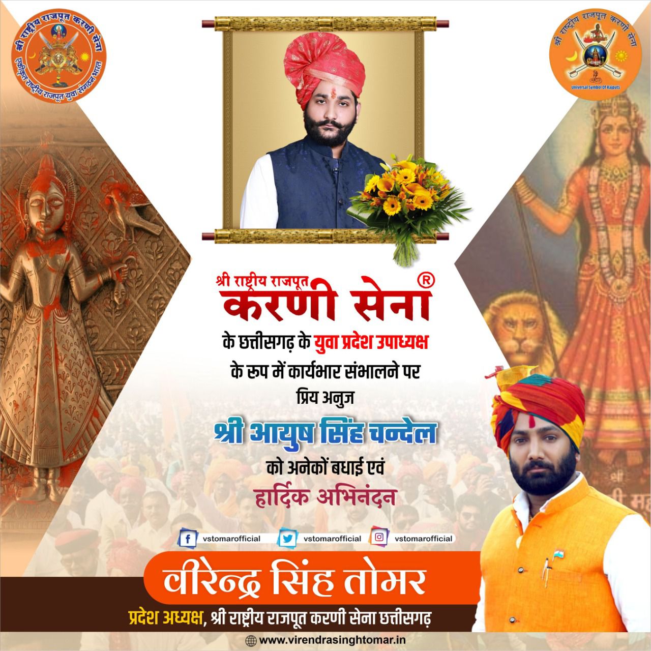 श्री राष्ट्रीय राजपूत करणी सेना छत्तीसगढ़ के आयुष सिंह चंदेल को युवा प्रदेश उपाध्यक्ष बनाया गया
