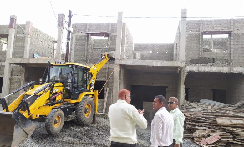 मोपका स्थित ग्लोरियस सिटी जिसके बिल्डर मनीष तिवारी के द्वारा अवैध निर्माण कराया गया था जिसके 8-10 मकानों को नगर निगम की अतिक्रमण शाखा द्वारा कार्यवाही करते हुए बुलडोजर से तोड़ दिया गया है।
