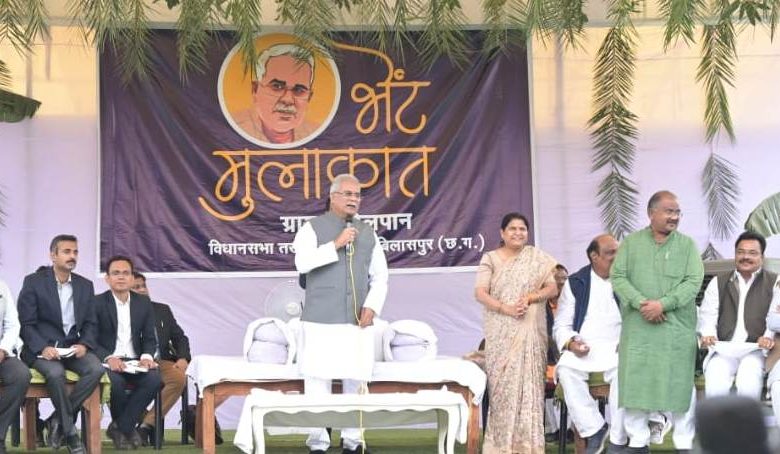 तखतपुर : मुख्यमंत्री श्री भूपेश बघेल ने कहा कि किसानों और मजदूरों की जेब में पैसा जाए, यही सरकार का उद्देश्य है। पहले किसानो का कर्जा बढ़ते जा रहा था। लोग किसानी छोड़ रहे थे। इसे देखते हुए हमने सरकार बनते ही दो घंटे में किसानो का कर्जा माफ किया। खेती किसानी को मजबूत बनाने न्याय योजनाओं की शुरूआत की। श्री बघेल आज बिलासपुर जिले के तखतपुर विधानसभा के ग्राम बेलपान में आयोजित भेंट मुलाकात में ग्रामीणों को सम्बोधित कर रहे थे। उन्होंने इस अवसर पर गनियारी को नगर पंचायत बनाने, ग्राम संकरीभांटा में मिनी स्टेडियम का निर्माण कराने के साथ बेलपान मंदिर व मेला स्थल को पर्यटन स्थल के रूप में विकसित करने सहित कई घोषणाएं की।