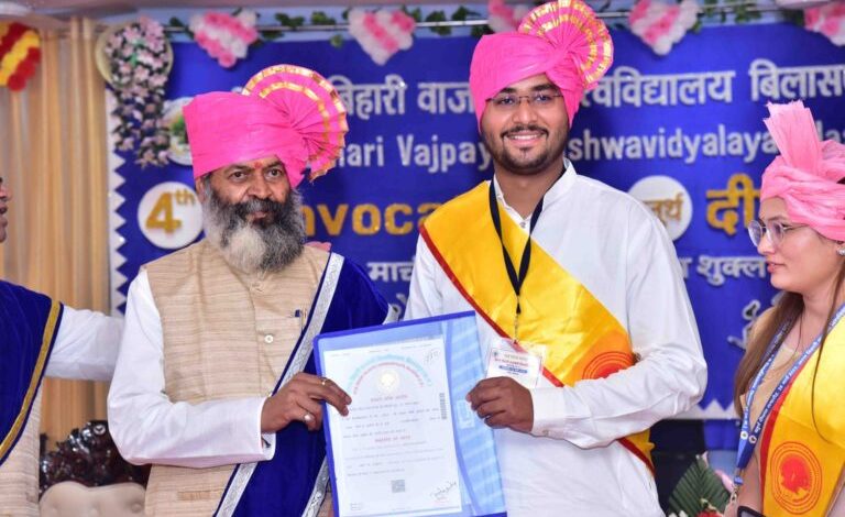 बिलासपुर : अटल बिहारी वाजपेयी विश्वविद्यालय, बिलासपुर का चौथा दीक्षांत समारोह मंगलवार को विश्वविद्यालय के कोनी स्थित भवन के सभागार में संपन्न हुआ।