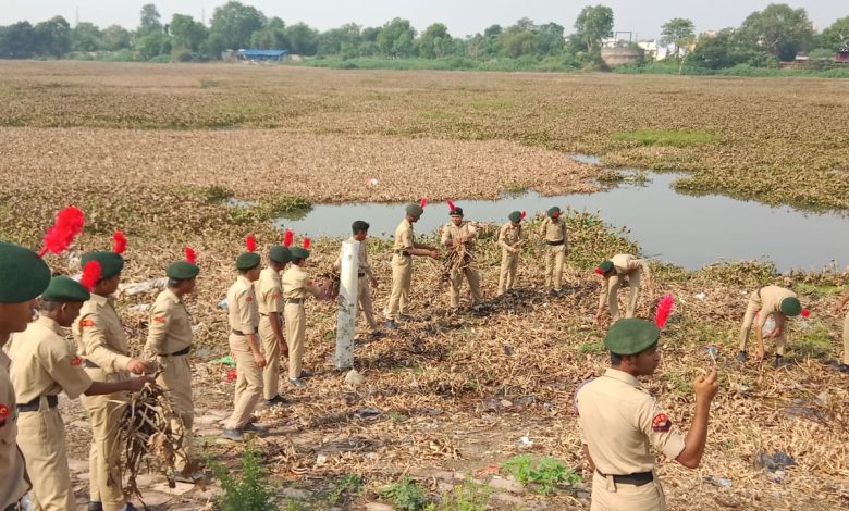 7 सीजी बटालियन एनसीसी के कमान अधिकारी कर्नल अमिताभ श्रीवास्तव के निर्देशानुसार एवं प्राचार्य डॉक्टर आर के गौराहा एवं एनसीसी अधिकारी अशोक नागपुरे के मार्गदर्शन में एनसीसी के छात्रों ने छठ घाट में पुनीत सागर एक्टिविटी के तहत जलकुंभी को निकाल कर अरपा नदी की सफाई की।