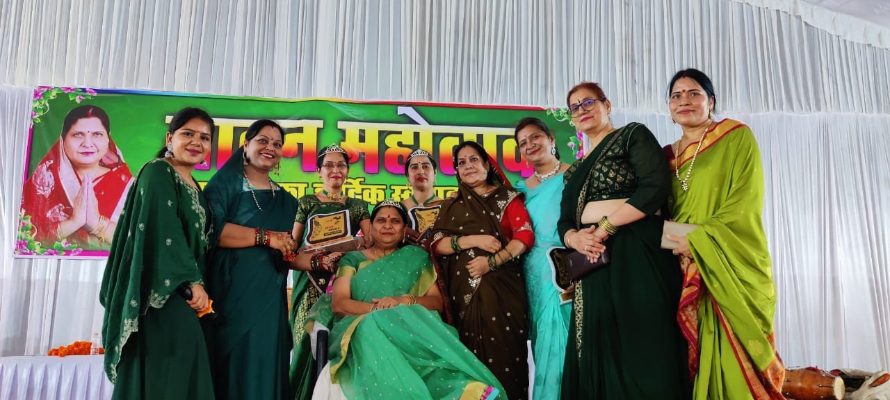 कार्यक्रम में अंजू शर्मा को सावन सुंदरी चुनकर सावन सुंदरी का ताज पहनाया गया।