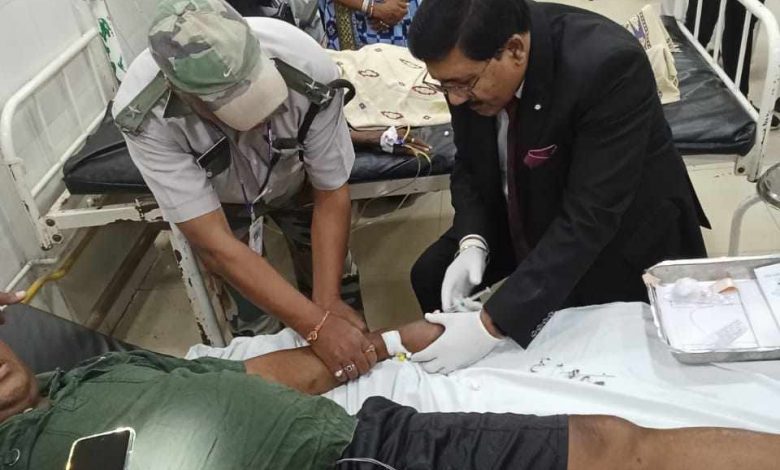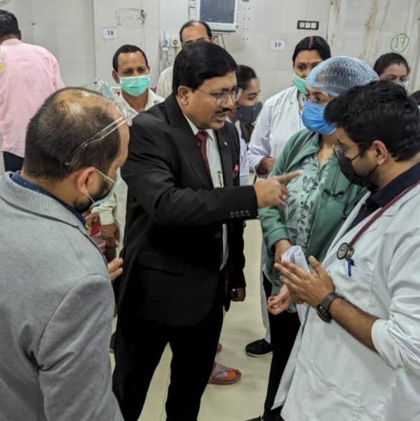 नेत्र रोग वार्ड पहुंच कर मरीजों से चर्चा की व चिकित्सालय द्वारा दी गई सुविधाओं के बारे में जानकारी ली। किसी भी प्रकार की असुविधा होने पर तत्काल ड्यूटी डॉक्टर को अवगत कराने व समाधान के लिए चिकित्सकों को निर्देश दिये।एमएम 3 में निरीक्षण के दौरान डीन प्रत्येक बिस्तर के पास जा कर मरीजों से चर्चा कर रहे थे । तभी उक्त वार्ड में भर्ती मरीज प्रेम सिंह उम्र 62 वर्ष के पास पहुचें। मरीज के परिजनों ने बताया की प्रेम सिंह के पूरे शरीर में सूजन हैं। अधिष्ठाता ने जब ड्युटी डॉक्टर से उक्त मरीज के बारे में चर्चा की तो डॉक्टरों ने बताया की प्रेम सिंह के शरीर में रक्त व प्रोटीन की कमी हैं व मरीज लकवा ग्रस्त हैं। शरीर में सूजन की वजह से रक्त नसें ढूंढनेे में समस्या हो रही हैं अधिष्ठाता डॉ. के. के. सहारे ने तत्काल वार्ड में उपलब्ध आवश्यक सामग्रियों का उपयोग करते हुए स्वय आईव्ही केनुला (जेल्को) प्रेम सिंह को लगाया व वहां उपस्थित समस्त कर्मचारियों को मार्गदर्शन दिया।