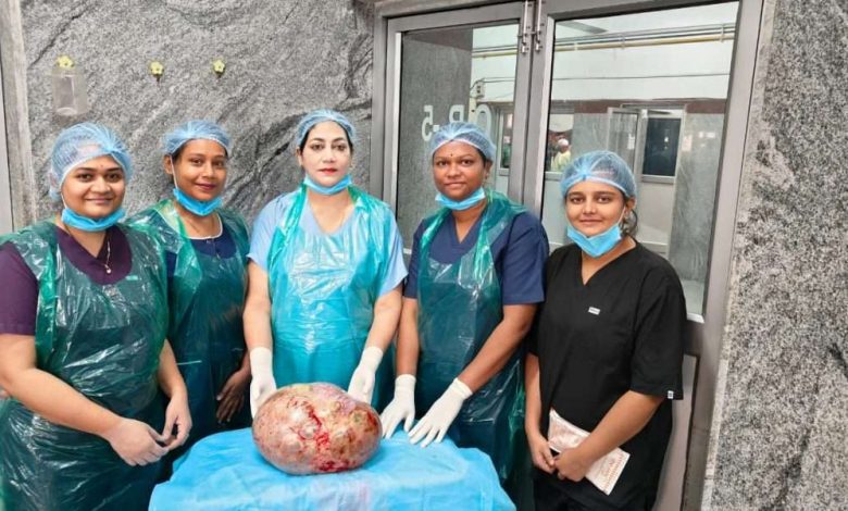 सिम्स हॉस्पिटल के अधीक्षक डॉ. एस नायक ने जानकारी देते हुए बताया कि मरीज लगनी बाई पति हरिशंकर, उम्र 35 वर्ष, निवासी ग्राम चिल्हाटी बिलासपुर, पिछले एक साल से पेट की समस्या से परेशान थी। 4 महीनो से पेट में सूजन आने लगी, जो कि बढ़ते जा रही थी। प्रायवेट अस्पताल में जांच में पेट में ट्यूमर होना बताया गया, परंतु कई अस्पतालों में दिखाने के बाद भी उसे उचित लाभ नहीं मिल पाया। ट्यूमर इतना बढ़ चुका था मानो वह 9 महीने की गर्भवती लग रही थी। मरीज को सांस लेने में परेशानी एवं अन्य परेशानी बढ़ने लगी। जिसके बाद वह सिम्स के स्त्री एवं प्रसूति रोग विभाग में भर्ती हुई । सभी जरूरी जाँचो के बाद दिनाँक 18 मई 2024 को सिम्स मे जटिल आपरेशन करके महिला के पेट से 10 किलो वजन का ट्यूमर निकाला गया जो उसके अंडाशय में था।