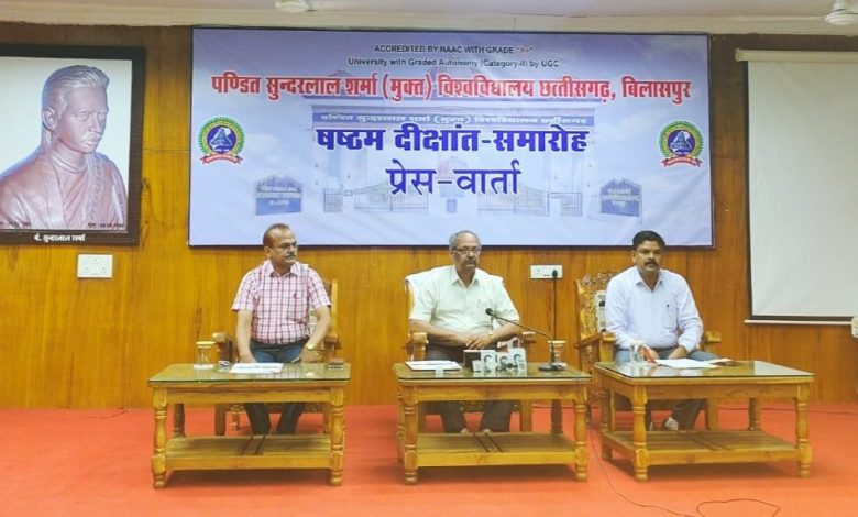 बिलासपुर। पण्डित सुदरलाल शर्मा (मुक्त) विश्वविद्यालय छत्तीसगढ़, बिलासपुर का षष्ठम दीक्षान्त समारोह 06 जुलाई को आयोजित की जा रही है।