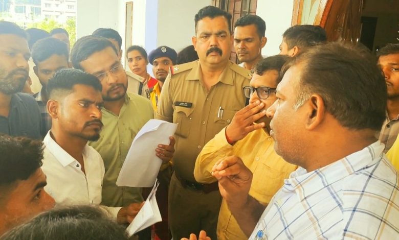 बड़ी संख्या में छात्रों ने अटल विश्वविद्यालय का घेराव कर कुलपति के खिलाफ जोडदार नारेबाजी करते हुए के आर ला महाविद्यालय के प्राचार्य को तत्काल हटाने की मांग की।