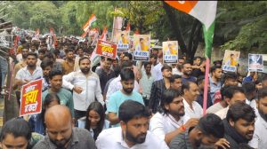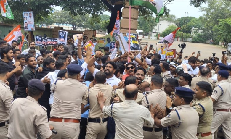 युवक कांग्रेस कार्यकर्ताओं को बेरीकेट लगाकर रोक लिया गया है, प्रदर्शन में पुलिस के साथ थोड़ी झूमझपटी जरूर हुई । लेकिन सभी प्रदर्शनकारियों को आगे बढ़ने से पहले ही रोक लिया गया है, जिन्हें पुलिस ग्राउंड में रोक कर रखा गया है।