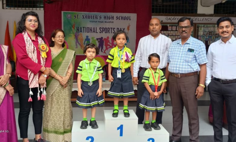बिलासपुर। सेंट जेवियर्स हाई स्कूल व्यापार विहार में मेजर ध्यानचंद जी के जन्म दिवस के अवसर पर 29 अगस्त गुरुवार को राष्ट्रीय खेल दिवस का आयोजन किया गया ।जिसमें (मोंटेसरी) पूर्व प्राथमिक कक्षाओं के नन्हे मुन्नों ने भाग लिया ।