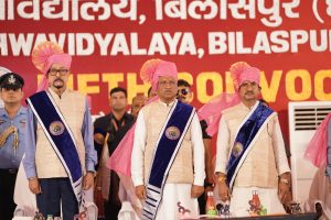 दीक्षांत समारोह को संबोधित करते हुए राज्यपाल रमेन डेका ने कहा कि विश्वविद्यालय सिर्फ संस्थानों से कहीं अधिक है। विश्वविद्यालय हमारी सामूहिकता, ज्ञान और संस्कृति के संरक्षक है। वे ऐसे स्थान है जहां इतिहास संरक्षित किया जाता है। साहित्य का विश्लेषण किया जाता है। आप अपनी पढ़ाई के माध्यम से विचार के विविध क्षेत्रों मेें जुड़ रहें है मानवता के बारे में आपकी विचार को समृद्ध किया जा रहा है। भारत सरकार की राष्ट्र शिक्षा नीति 2020 दूरदर्शिता का प्रतिनिधित्व करती है। इसका उद्देश्य युवाओं को तेजी से गतिशील दुनिया में आगे बढ़नेे के लिए कौशल और ज्ञान से परिपूर्ण करना है। छत्तीसगढ़ के लिए यह नीति प्रगतिशील सुधारों की लहर लाती है। जो हमारे शैक्षणिक संस्थानों पर गहरा प्रभाव डालने के लिए तैयार है। विश्वविद्यालय में संचालित पाठ्यक्रम को न केवल उभरते हुए रूझानों और प्रौद्योगिकियों के प्रति गतिशील और उत्तरदायी बनाना चाहिए बल्कि इसमें भारतीय परंपरा की समृद्ध विरासत भी शामिल होनी चाहिए। हम मिलकर एक उच्च शिक्षा प्रणाली का निर्माण कर सकते हैं, जो न केवल हमारे छात्रों की जरूरतों केा पूरा करेगी बल्कि हमारे राज्य और राष्ट्र के समग्र विकास में योगदान देगी।