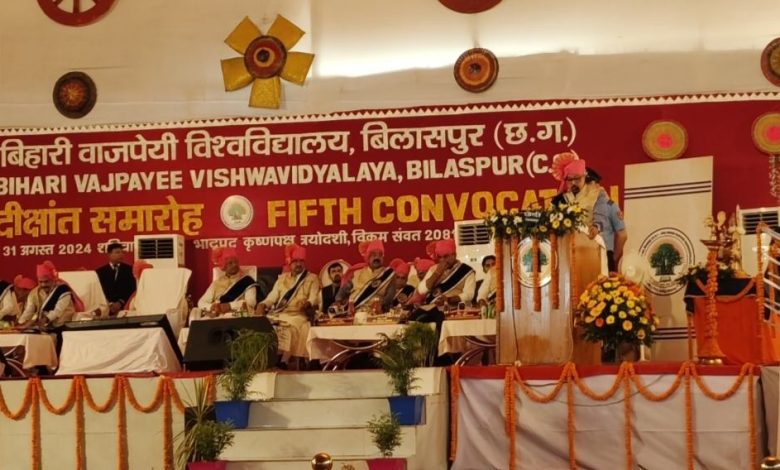विश्वविद्यालय हमारी सामूहिकता, ज्ञान और संस्कृति के संरक्षक: राज्यपाल रमेन डेका समावेशी शिक्षा के साथ विश्वविद्यालय ज्ञान के क्षेत्र में बने विश्वगुरू: मुख्यमंत्री विष्णु देव साय अटल बिहारी वाजपेयी विश्वविद्यालय का 5वां दीक्षांत समारोह 64 विषयों में 92 गोल्ड मैडल और 48 विद्यार्थियों को पी.एच.डी. से नवाजा गया