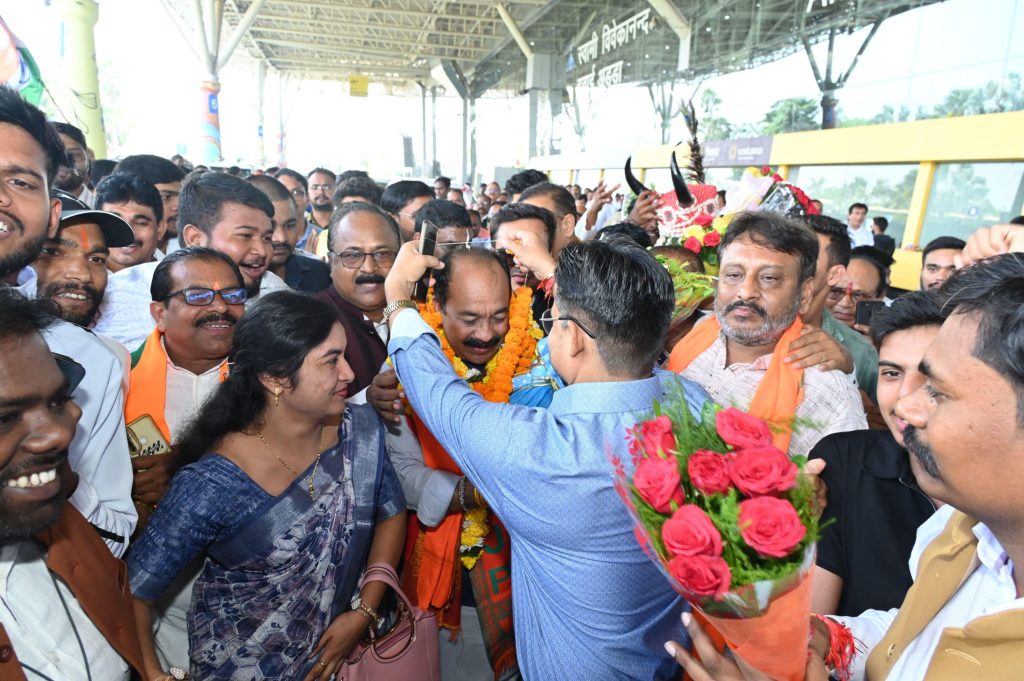 रायपुर। उप मुख्यमंत्री तथा लोक निर्माण मंत्री अरुण साव अमेरिका के अध्ययन प्रवास के बाद आज सुबह रायपुर पहुंचे। राजधानी वापसी पर स्वामी विवेकानंद विमानतल पर उनका भव्य और आत्मीय स्वागत किया गया।