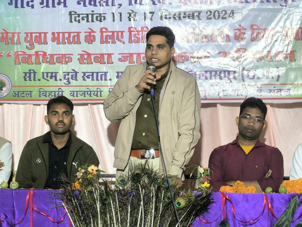 भारत सरकार के युवा खेल मंत्रालय द्वारा संचालित इस शिविर में मेरा युवा भारत के लिए युवा डिजिटल साक्षरता के लिए युवा की थीम पर कार्यक्रम संचालित किया जा रहा है। साथ ही विधिक सेवा जागरूकता भी चलाया जा रहा है। जिसमें हाईटेक बस के माध्यम से गांव-गांव जाकर बैगा आदिवासी समुदाय के बीच नशा मुक्ति, घरेलू हिंसा, लैंगिक समानता के विरुद्ध कार्यक्रम चला कर ग्रामीण लोगों को सामाजिक कुरीतियों के प्रति जागरूक किया जा रहा है।