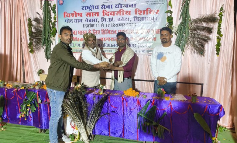 बिलासपुर। अंचल के प्रतिष्ठित सीएमडी महाविद्यालय के राष्ट्रीय सेवा योजना का 07 दिवसीय विशेष शिविर का आयोजन 11 दिसंबर से 17 दिसंबर तक ग्राम नेवासा में चल रहा है। इस आयोजन में एनएसएस के स्वयं सेवकों के द्वारा अनेक कार्य किये जा रहे है।