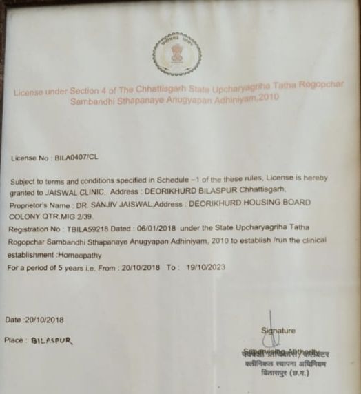 ऐसा ही एक क्लिनिक देवरीखुर्द मेन रोड पर जायसवाल क्लिनिक के नाम से संचालित हो रहा है। जिसके पास BHMS की डिग्री है एवं जिसका रजिस्ट्रेशन 19/10/2023 में लेप्स भी हो चुका है लेकिन ये बड़े मजे से एलोपैथिक इलाज करता हुआ देखा जा सकता है। बाकायदा उनके क्लीनिक में मरीज को एडमिट कर बॉटल भी चढ़ाया जा रहा है। बड़े बड़े गंभीर बीमारियों का ये अपने क्लीनिक में एलोपैथिक इलाज कर रहे है । वही अपने क्लीनिक के बगल में ये एक मेडिकल दुकान भी खुलवा रखा है ताकि इनकी दुकानदारी बढ़िया से चले और कमीशन भी मिले।