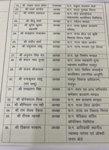 रायपुर। प्रदेश सरकार ने बुधवार की देर शाम 36 निगम, मंडलो के अध्यक्षों की सूची जारी की है।