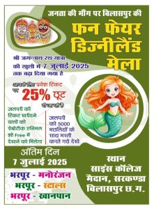 भगवान जगन्नाथ रथ यात्रा की खुशी में डिजनीलैंड मेले के एंट्री में 25% की छूट, पब्लिक डिमांड में मेले को 7 जुलाई तक बढ़ाया गया