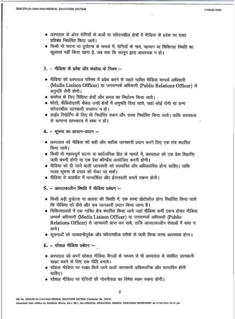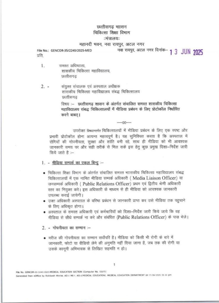 कई ऐसे केस हुए है जहां इलाज के नाम पर डॉक्टर मरीजो से पैसे लेते पाए गए है, हॉस्पिटल में व्यापक गड़बड़ियां पाई गई है। जिसे मीडिया ने उजागर किया है। हाल ही में नॉर्मल डेथ को सर्पदर्श बताकर सरकार से गलत मुआवजा लेने के मामले में सिम्स हॉस्पिटल की एक महिला डॉक्टर पर FIR दर्ज किया गया है, वही मामले की विस्तृत जांच भी चल रही है। इसी तरह जिला चिकित्सालय में ऑपरेशन के लिए पैसा मांगने का भी एक मामला सामने आया था । जिसे मीडिया ने ही उजागर किया था । लेकिन अब इस तरह के मामले जनता के सामने कैसे आ पाएगी ? यदि आप मीडिया को ही हॉस्पिटल में वीडियो, फोटो लेने और कवरेज करने पर प्रतिबंधित कर देंगे।