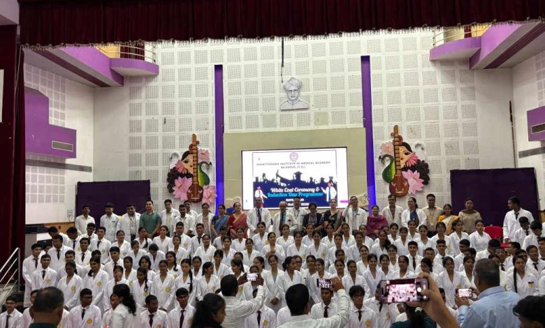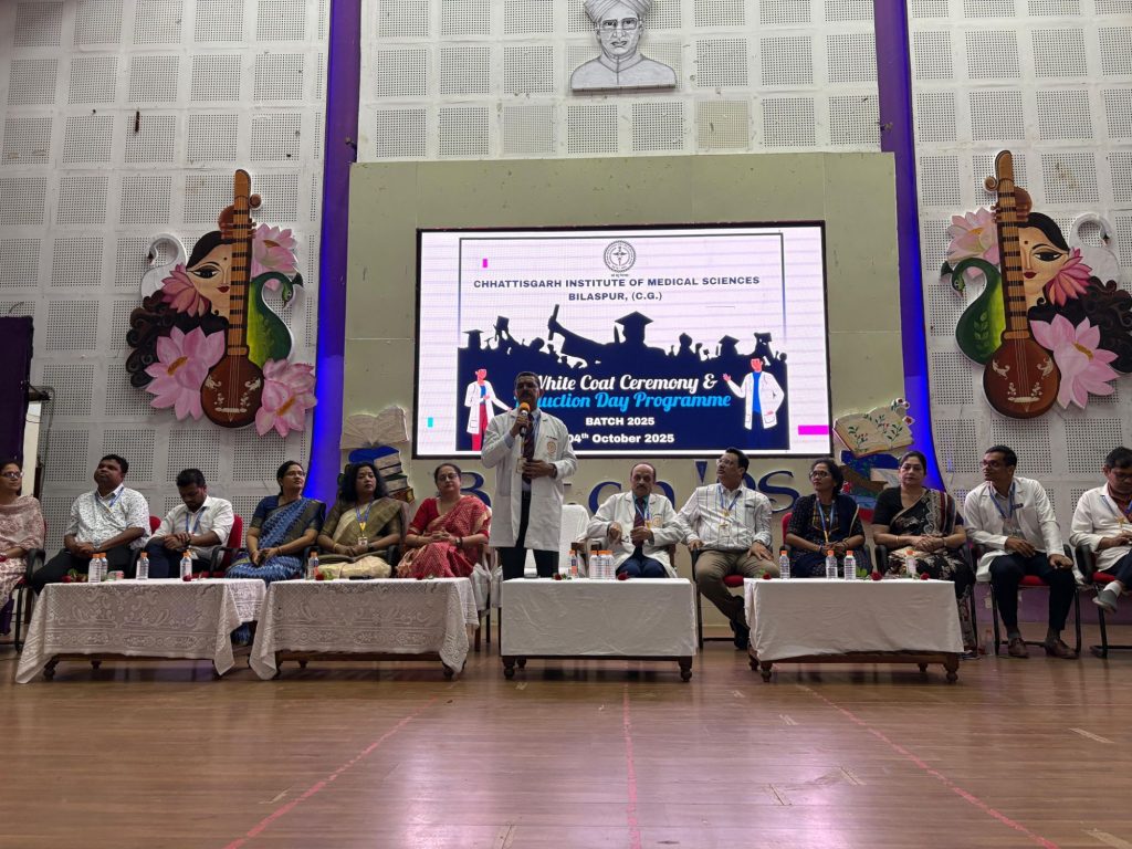 बिलासपुर। छत्तीसगढ़ इंस्टिट्यूट ऑफ मेडिकल साइंसेज़ (सिम्स), बिलासपुर में दिनांक 4 अक्टूबर 2025 को एमबीबीएस बैच 2025-26 के लिए इंडक्शन डे एवं वाइट कोट सेरेमनी उत्साहपूर्वक आयोजित की गई। कार्यक्रम का शुभारंभ दीप प्रज्वलन एवं सरस्वती वंदना के साथ हुआ।