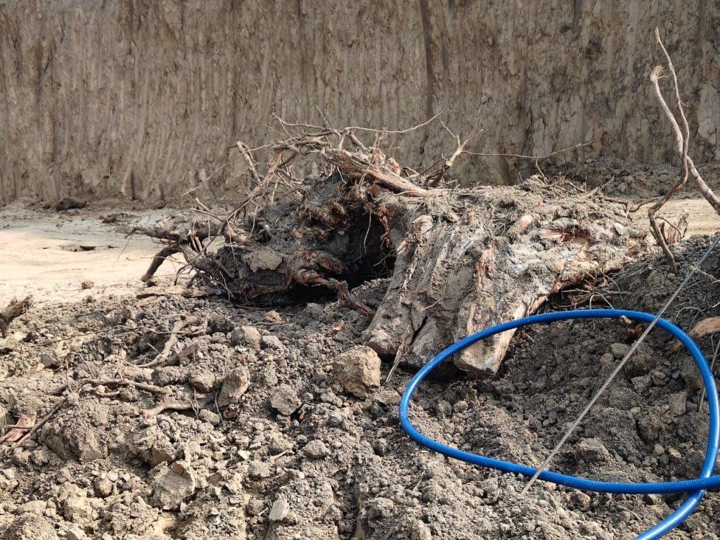 उत्खनन के दौरान ठेकेदार ने जमीन पर लगे सभी हरे-भरे वृक्षों को भी काटकर पूरे क्षेत्र को मैदान में तब्दील कर दिया। स्थानीय नागरिकों के अनुसार यहाँ दिन-रात जेसीबी और चेन माउंटेन मशीनें चलती रहीं, हाइवा ट्रकों से मिट्टी की लगातार डुलाई होती रही, और मजदूर चौबीसों घंटे काम में लगे रहे।