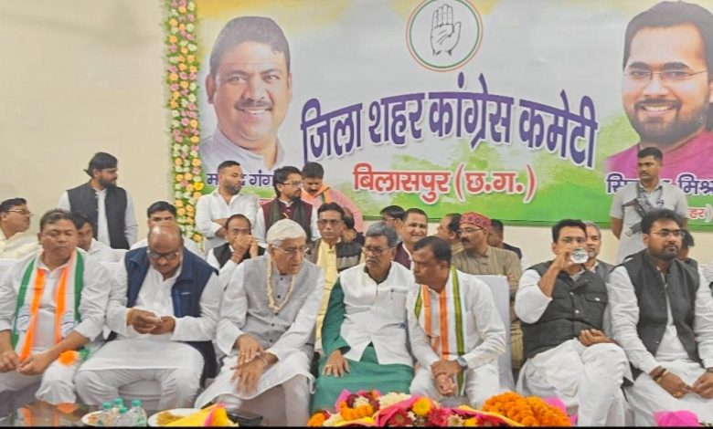 बिलासपुर। जिला कांग्रेस कमेटी ग्रामीण एवं शहर के नव नियुक्त जिलाध्यक्षों के शपथ ग्रहण समारोह को लेकर आज कांग्रेस भवन में उत्साह और जोश का माहौल देखने को मिला। सुबह से ही पूरे जिले एवं शहर के हर बूथ से बड़ी संख्या में कांग्रेस पदाधिकारी और कार्यकर्ता समारोह में शामिल होने पहुंचे।