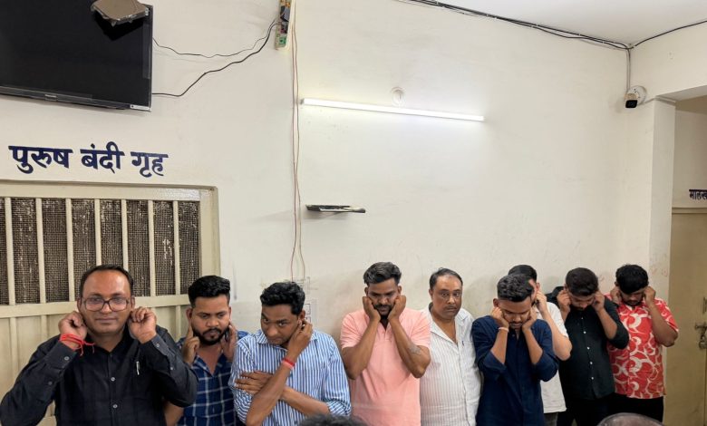 पुलिस को मुखबिर से सूचना मिली थी कि नेहरू नगर क्षेत्र में कुछ लोग जनता कंस्ट्रक्शन के ऑफिस में जुआ खेल रहे हैं, जिसके बाद टीम ने मौके पर दबिश दी। कार्रवाई के दौरान सभी आरोपियों को रंगे हाथों पकड़ा गया। पुलिस ने मौके से कुल 9 लोगों को गिरफ्तार किया है, जिनमें चंद्र प्रकाश पाण्डेय, सागर मंगेशकर, नितेश चंद शर्मा, दुर्गेश सारथी, अखिलेश त्रिवेदी, अमन धर, आशीष खूंटे, रोशन सोनी और सृजन शर्मा शामिल हैं। सभी आरोपी बिलासपुर के अलग-अलग क्षेत्रों के निवासी हैं।