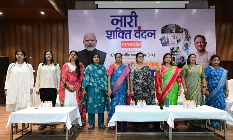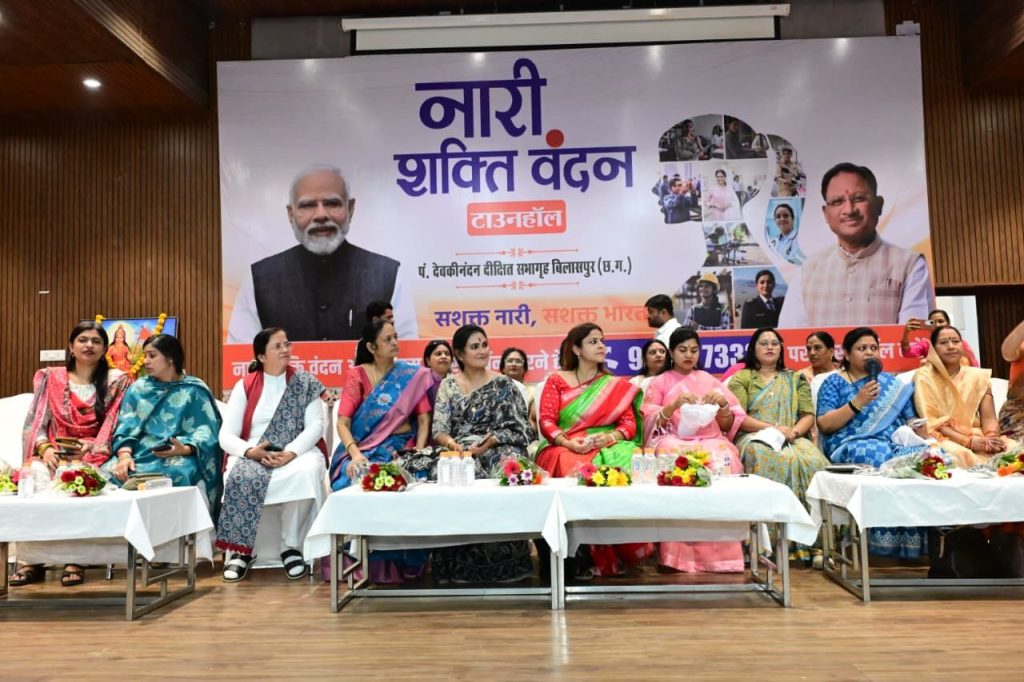 बिलासपुर। न्यायधानी बिलासपुर में आज नारी शक्ति वंदन कार्यक्रम का भव्य आयोजन लालबहादुर शास्त्री स्कूल स्थित देवकीनंदन दीक्षित सभागार में किया गया। कार्यक्रम में नारी शक्ति वंदन अधिनियम के तहत महिलाओं को विधानसभा और लोकसभा में 33 प्रतिशत आरक्षण दिए जाने के प्रावधान का स्वागत करते हुए कार्यक्रम में मौजूद महिलाओं ने प्रधानमंत्री श्री नरेंद्र मोदी के प्रति आभार व्यक्त किया।